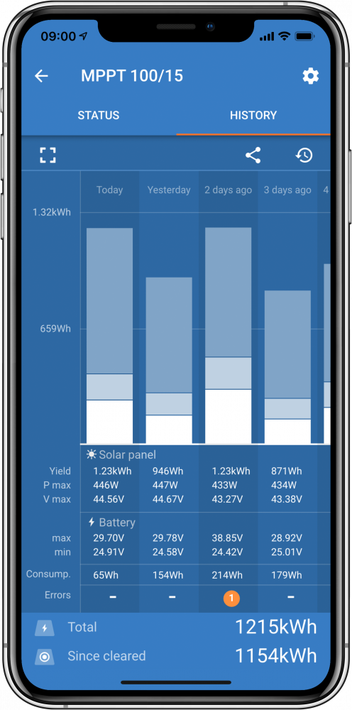 Controlul si monitorizarea la distanta ale caracteristicilor extinse ale incarcatorului dvs. MPPT-ul prin asocierea acesteia cu telefonul dvs. inteligent sau alt dispozitiv prin VictronConnect conectat la Portalul internet de Management de la distanta Victron (VRM) va ofera acces la puterea maxima a MPPT-ului dvs., oricand, oriunde; ambele servicii sunt gratuite. Pentru instalari la distanta - chiar si atunci cand nu exista conexiune la internet sau semnal de telefonie in apropiere - este posibil sa puteti monitoriza MPPT-ul prin asociere bluetooth cu un dispozitiv LoRaWAN(retea cu raza mare de actiune), disponibil optional.