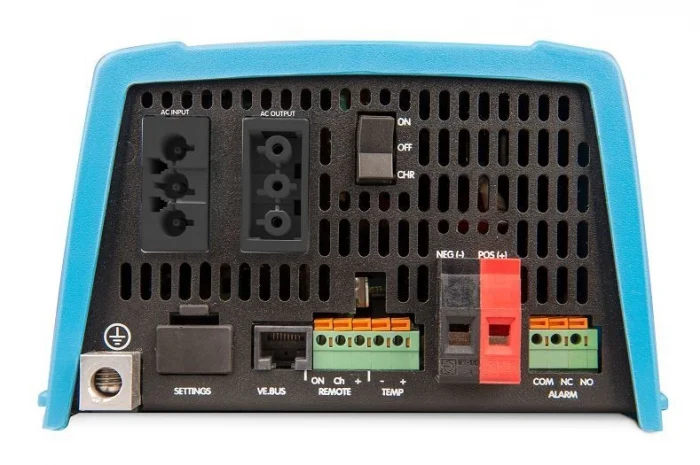 Iesirea principala are functionalitate neintrerupta. Invertorul Multiplus preia furnizarea consumatorilor conectati in cazul unei defectiuni la retea cand puterea de sustinere sau puterea generatorului este scazuta. Acest lucru se intampla atat de repede (in mai putin de 20 milisecunde) incat calculatoarele si alte echipamente electronice vor continua sa functioneza fara intreruperi. Cea dea doua iesire functioneaza doar cand CA este disponibil la intrarea Multiplus-ului.