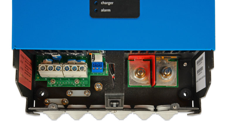 Iesirea principala este neintreruptibila. In cazul unei pene de curent sau atunci cand reteaua de alimentare la tarm/generatorul este deconectat, MultiPlus-II preia alimentarea consumatorilor conectati. Cea de-a doua iesire este sub tensiune numai atunci cand curentul alternativ este disponibil la intrarea MultiPlus-II. Consumatorii care nu descarca bateria, precum un incalzitor de apa de exemplu, pot fi conectati la aceasta iesire.