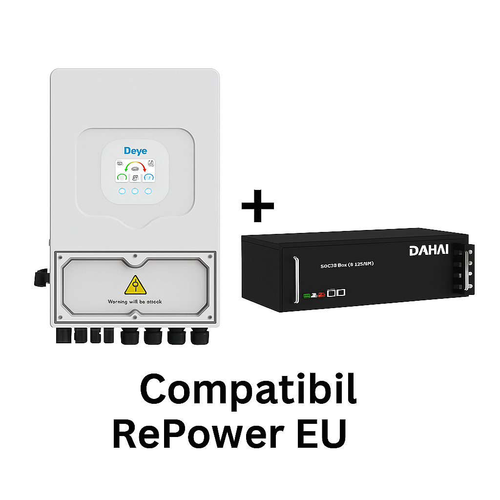 Acest pachet combină unul dintre cele mai apreciate invertoare hibride de pe piață – Deye SUN-8K-SG05LP1-EU – cu o baterie LiFePO₄ DAHAI de 5,12 kWh, recunoscută pentru durabilitate, stabilitate și siguranță. Rezultatul? Un sistem complet, perfect pentru locuințe care doresc independență energetică, continuitate în alimentare și economii reale.